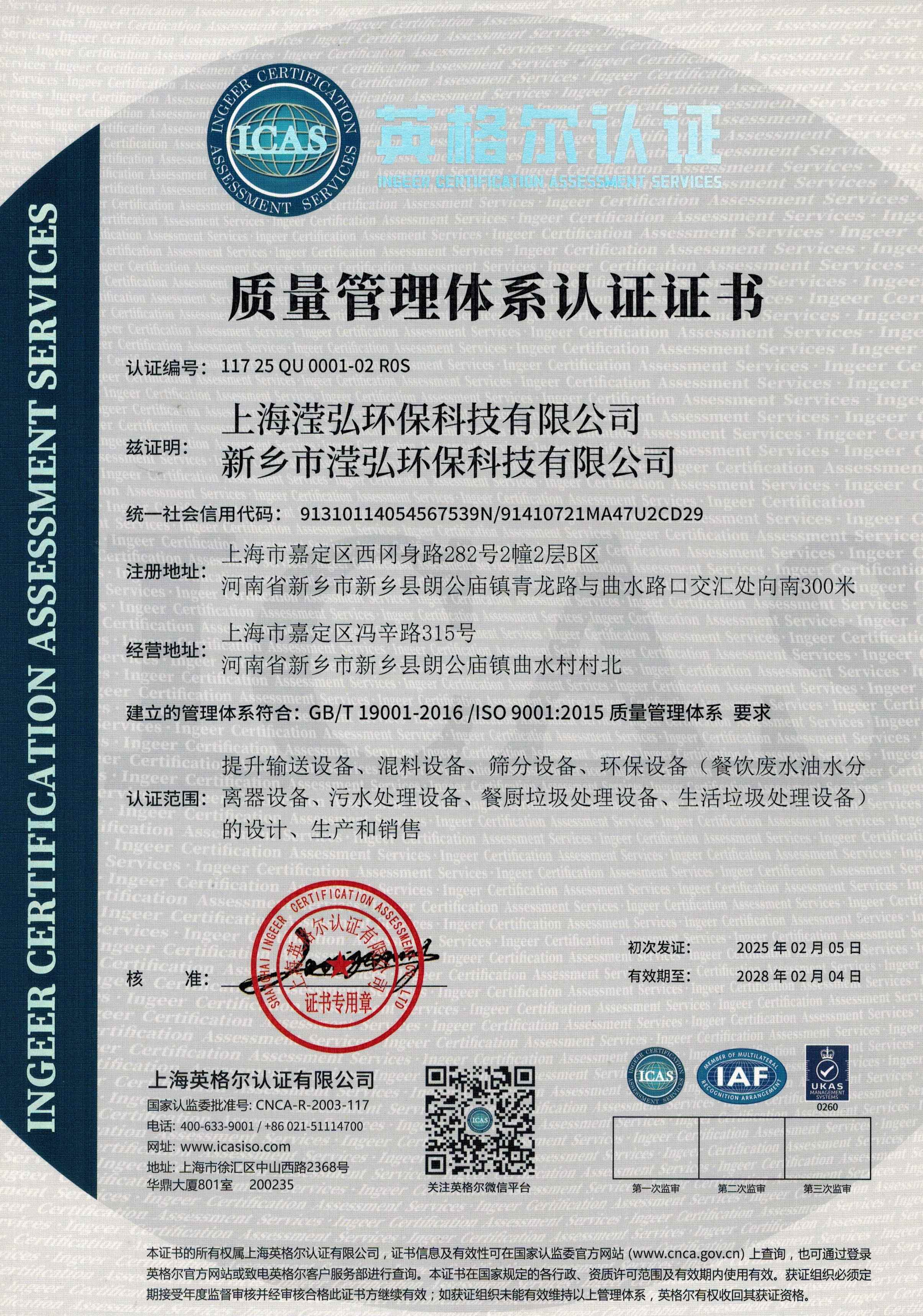 環(huán)境管理體系認(rèn)證證書