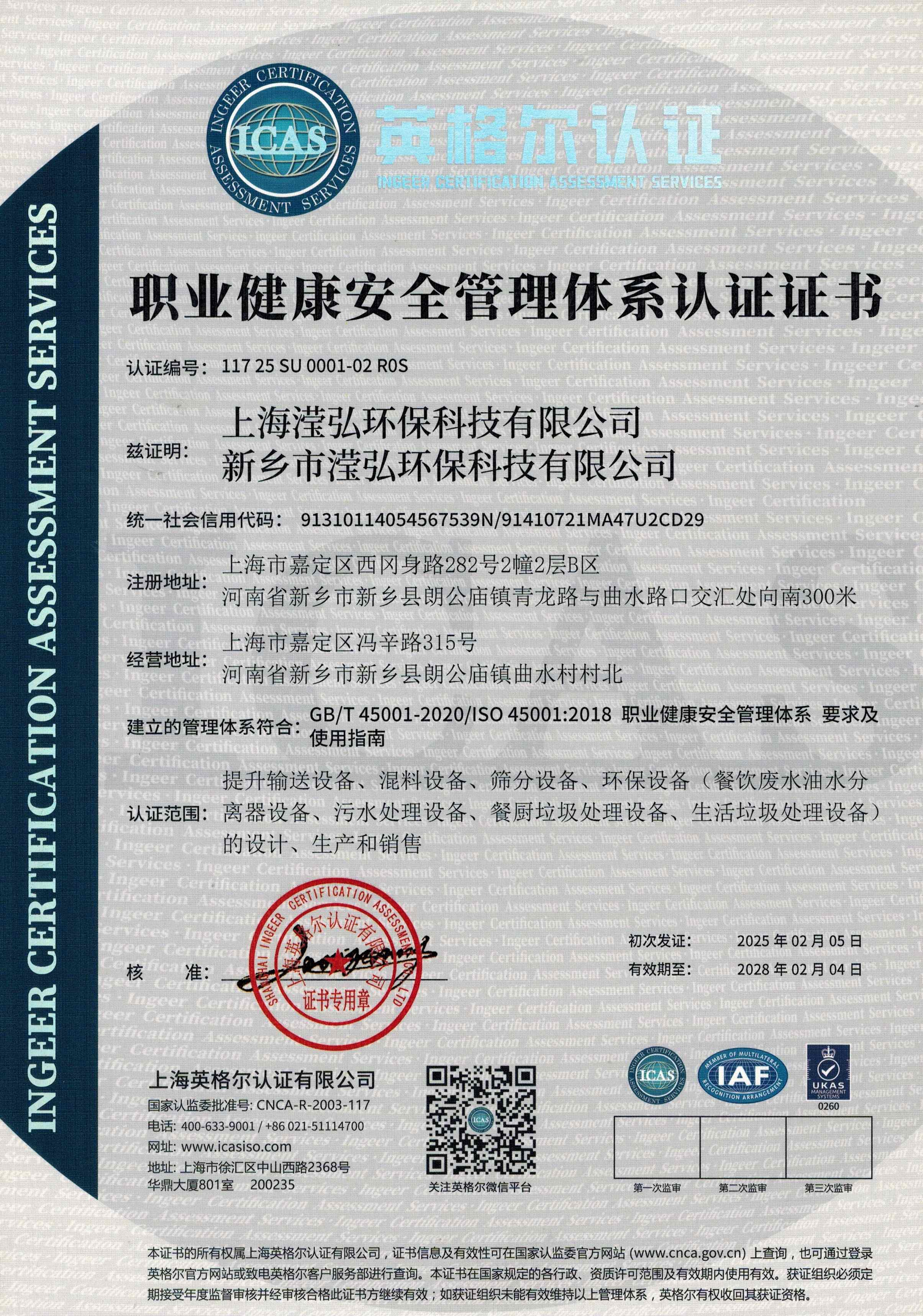 職業(yè)健康安全管理體系認(rèn)證證書