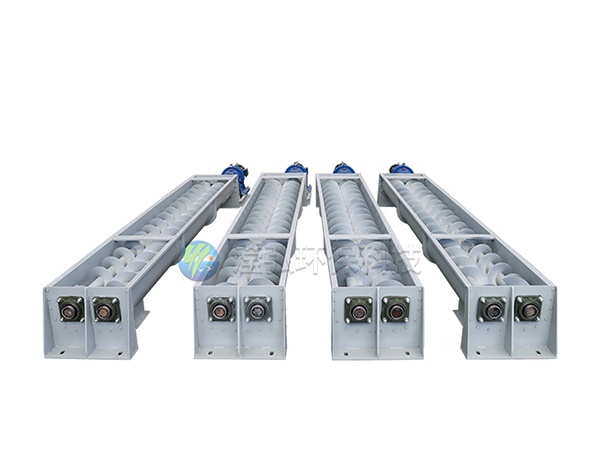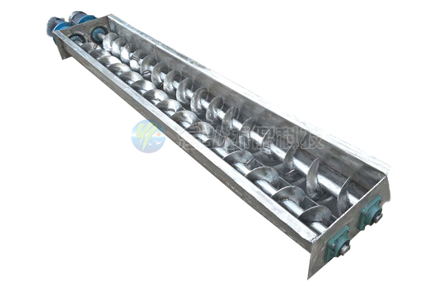 雙軸螺旋輸送機(jī)安裝有兩根螺旋軸,一根左旋,一根右旋。兩根螺旋軸轉(zhuǎn)向不同方向,依靠螺旋葉片推動(dòng)物料前進(jìn),雙軸之間的物料處于螺旋葉片之間。來回交替旋轉(zhuǎn)和輸送,可避免物料堆積造成的物料堵塞現(xiàn)象。